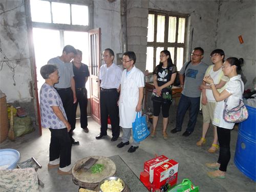 为庆祝中国共产党成立95周年,深入开展“两学一做”学习教育,根据学院党总支“两学一做”学习教育方案部署安排,2016年6月23日,临床医学院学生工作党总支副书记岳喜同带领党总支成员、党支部书记和临床专家,再次来到泗水县星村镇小于村,走访慰问老党员、老干部和困难家庭,向他们赠送了慰问品,对他们进行了健康查体,详细了解了其家庭生活和困难情况。