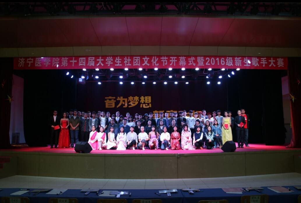 2016年10月12日晚7点,由济宁医学院团委、学生会主办,社团联合会、大学生艺术团承办的第十四届大学生社团文化节开幕式暨2016级新生歌手大赛决赛在太白湖校区大学生活动中心成功举办。出席本次活动的嘉宾有各二级学院团总支老师,评委为各二院学生会主席或文艺部部长。