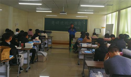 交流过程中,2018级研究生和2014级初试成绩较高的学生代表分别向同学们分享了自己在考研复习、复试、调剂过程中的心得体会、经验教训,解答了同学们关于考研报考、复试、调剂中关心的问题。