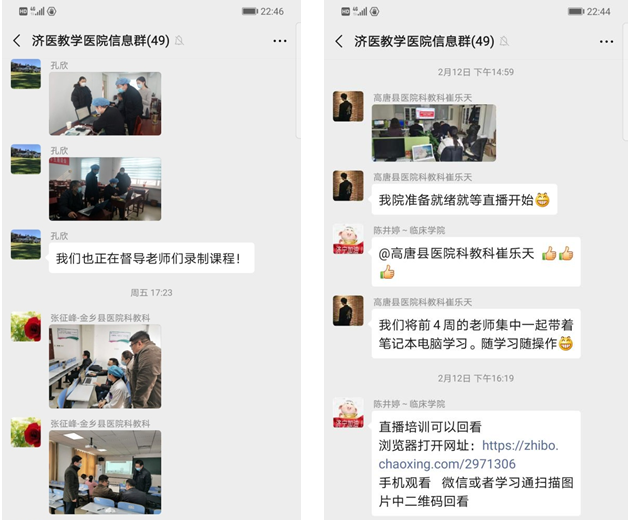针对进入临床实习期的学生,学院还在超星平台开设了《临床技能学》课程,开放了14项临床常用操作视频供学生学习,同时在智慧树平台为实习生开放了兄弟院校的相关课程作为辅助教学资源,与其他教育部、教育厅推荐的网络资源结合,共同为学生居家学习提供支持和帮助。各教学医院还根据实习进度安排,利用微信群、QQ群等平台,安排带教医生组织学生进行病例分析和讨论,落实各项实习任务。