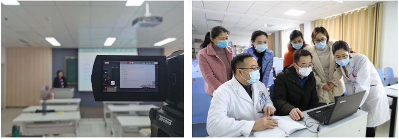各教研室及教学医院在全院抗击疫情的特殊情况下,努力克服人员短缺,及时组织教师学习使用线上教学平台,尤其是在抗击疫情一线的医生还来不及脱下隔离衣就进入教学的准备工作中。在《传染病学》课程中,教师引入同事们奔赴湖北武汉抗击疫情一线的典型事迹,勉励同学们夯实专业基础,努力成为能够护佑生命的白衣天使。