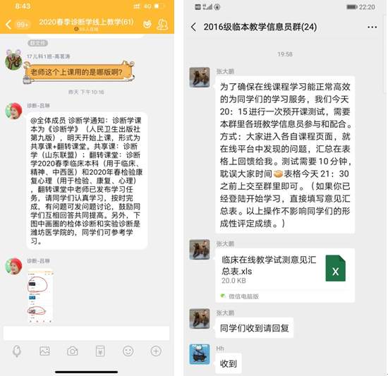 为及时了解线上教学情况,学院在每个班级明确了1名同学作为线上教学信息员,建立了教学反馈微信群和QQ群,开课前进行了集中线上开课测试,及时解决开课相关问题,持续跟进线上教学运行情况。学院教学督导专家登陆各平台,对教师授课资源和授课情况进行督导检查,确保授课质量。