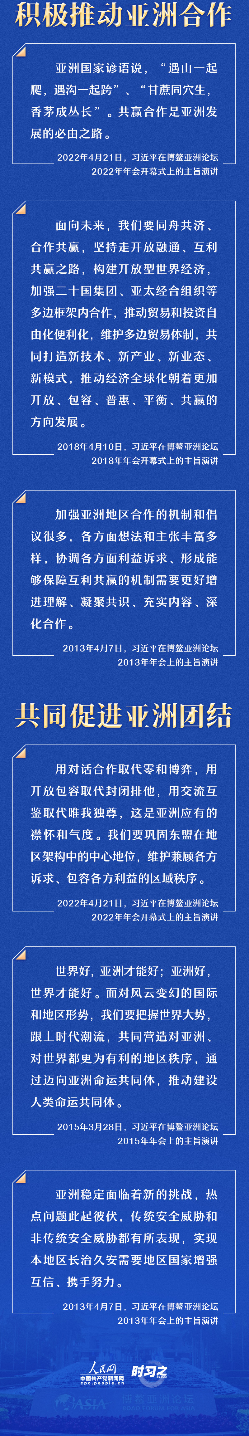 4月21日,博鳌亚洲论坛2022年年会开幕式在海南博鳌举行,国家主席习近平以视频方式发表题为《携手迎接挑战,合作开创未来》的主旨演讲。这是自2013年以来,习近平第五次出席博鳌亚洲论坛年会并发表主旨演讲,传递促进亚洲和平发展、共赢合作的重要信息。