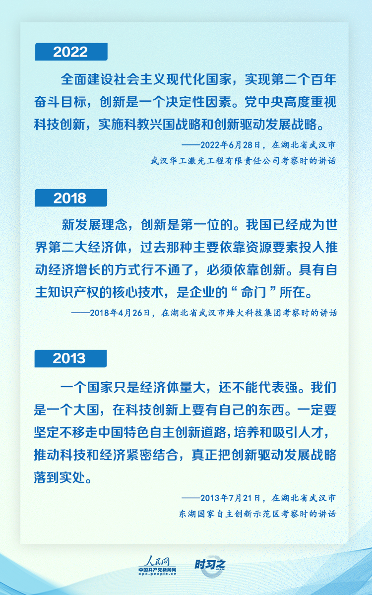 “科技创新,一靠投入,二靠人才。看到这里聚集了不少精英人才,大家都很年轻,充满活力,我感到很高兴。”习近平在武汉华工激光工程有限责任公司考察时说。