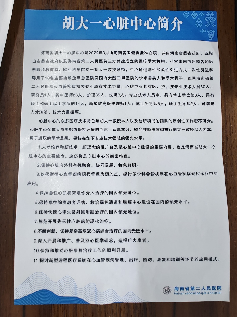 2021年,我院顺利通过国家胸痛中心认证并授牌,是五指山市卒中防治中心、高危孕产妇救治中心、高危新生儿救治中心。