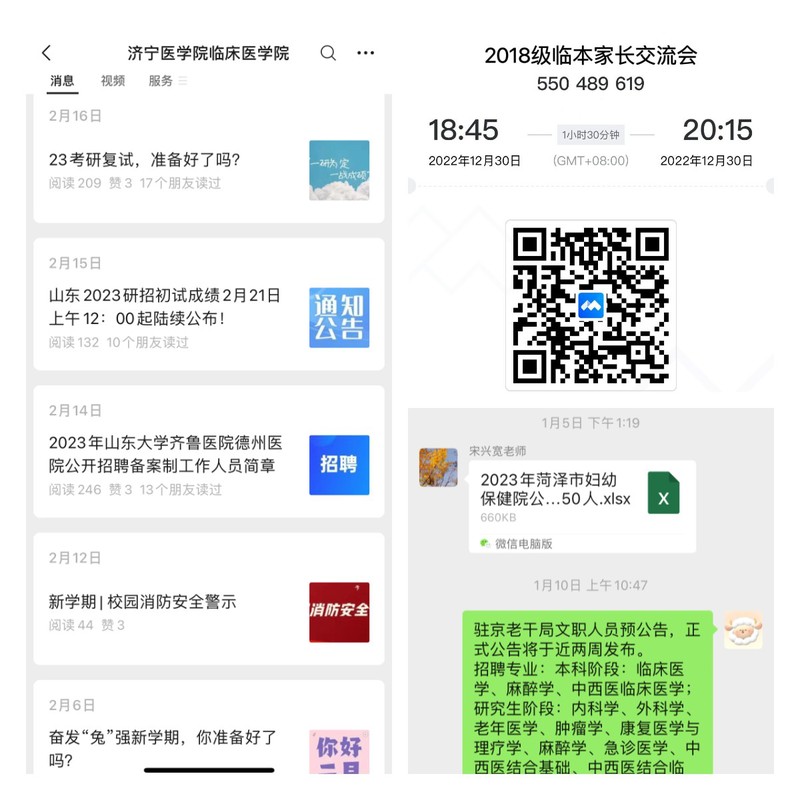 家校联动双向发力,就业服务前置。分层次摸排就业意向,挖掘资源精准推送,推发信息“不放假”,家校携手“不断线”,开好云端家长课堂,结合形势讲政策,契合需求供岗位,累计推发,就业信息763条,互动1065次,努力构建好育人合力体。
