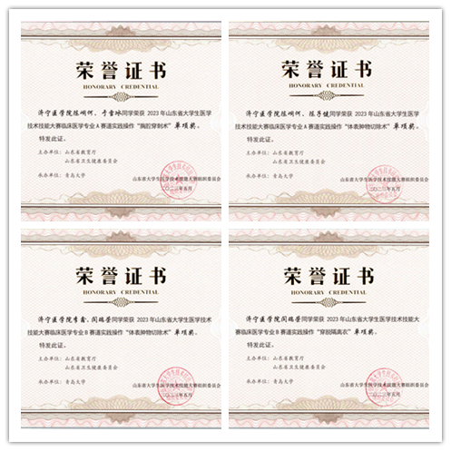 5月6日至7日,由山东省教育厅和山东省卫生健康委员会主办、青岛大学承办的2023年山东省大学生医学技术技能大赛在青岛举行。经过激烈角逐,我院临床医学专业B队获临床医学专业赛道选手团队二等奖,A、B队获单项奖四项。