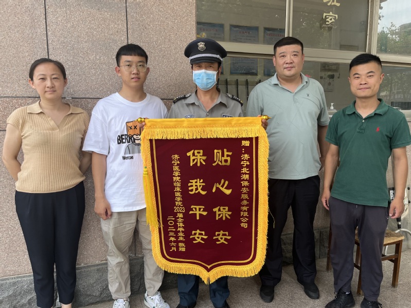 劳动服务后,同学们以岗位场景为背景拍摄“最美毕业照”,以实际行动践行“为人民服务”的承诺并向后勤安保服务人员赠送锦旗,表达离别之际的感恩之情