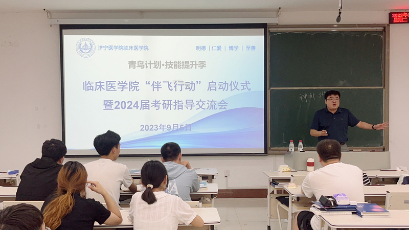 为科学谋划2024届毕业生就业工作,进一步提升我院毕业生就业质量,9月5日,临床医学院启动第十四期“伴飞行动”暨2024届毕业生考研指导交流会,任城校区全体2024届毕业生参加现场交流,家长朋友线上同步参与。