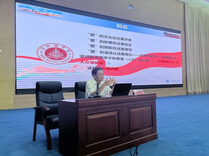 王传军以《做德医双馨的好医生——基于济医文化背景下的成才路径》为题,向同学们介绍了文化济宁、学校概况、教育教学、研究生教育以及专业发展现状等,通过一个个济医“爱”的故事,“大爱讲堂”、“大爱铸医魂”系列活动,诠释了“大爱济医”的深刻内涵。鼓励大家永葆医者情怀,不辱初心使命,仰望星空又脚踏实地,敢想敢为又善作善成,踔厉奋发,勇毅前行,做医德高尚、医术精湛的大医名医,让青春之我在救死扶伤的火热实践中绽放绚丽之花!为人类健康事业和国家经济社会发展作出应有贡献!