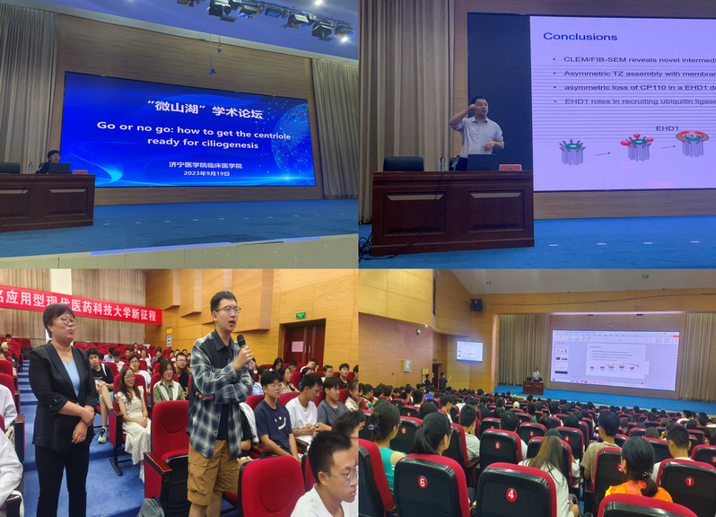 9月19日下午,临床医学院“微山湖”学术论坛在太白湖校区图文信息楼5楼报告厅举行。论坛邀请山东师范大学生命科学学院教授、博士研究生导师赵惠杰教授作了“Go or no go:how to get the centriole ready for ciliogenesis”的专题讲座,临床医学院副院长张璟主持。