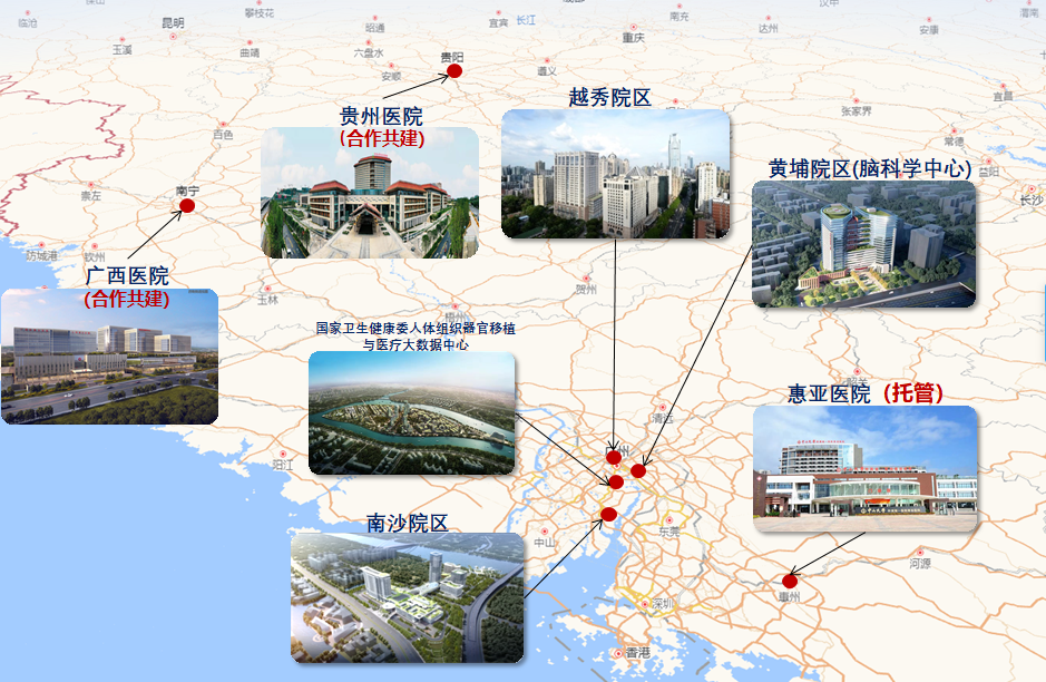 百年老院,立院为公。中山大学附属第一医院(简称“中山一院”)始建于1910年,地处粤港澳大湾区的中心城市广州市,秉承“医病医身医心、救人救国救世”的医训,现已迈入中国一流医院行列。 1 百年发展 求精图强 医院现有三个院区(越秀院区、黄埔院区、南沙院区),托管惠亚医院,合作共建两个国家区域医疗中心(中山大学附属第一医院广西医院、中山大学附属第一医院贵州医院)。 ●“辅导类”综合类国家医学中心创建单位 ●国家公立医院高质量发展试点医院 ●国家建立健全现代医院管理制度试点医院 ●国家疑难病症诊治能力提升工程建设单位 ●国家中西医协同“旗舰”医院试点单位 ●广东省首批高水平医院重点建设单位 ●广东国际精准医学中心建设单位 2 实力雄厚 业界前列 3 一流平台 助力发展 ●首批国家临床教学培训示范中心 4 引育体系 未来可期 ●拥有国家级高层次人才50人次 5 国际舞台 对话世界 6 保障关怀 用心用情 当前,医院正牢牢把握高质量发展这个首要任务,坚持面向世界科技前沿、面向经济主战场、面向国家重大需求、面向人民生命健康,为加快建成疑难重症诊治和灾难医学中心、科技创新中心、医学精英人才培养中心、国际合作与交流中心、现代化医院管理体系、模式与机制守正创新中心、党建与优秀文化传承创新中心,全面建成中国特色、世界一流的国家医学中心而努力奋斗!