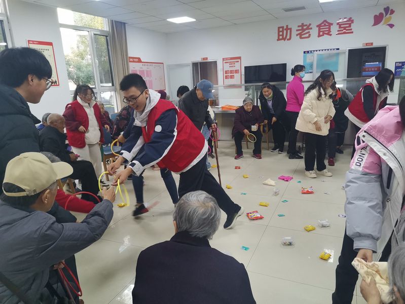 和风送温暖,志愿敬老行。志愿者前往九如城航运康养中心开展暖心志愿活动,通过歌曲、舞蹈、太极等表演活跃现场气氛,鼓励老人参与拍手操、套圈等趣味互动游戏,以此拉近彼此之间的距离。志愿者们将老年人当作“家里人”,倾听老人心声,并叮嘱老人做好防寒保暖,使其切实感受到陪伴与温暖,最后志愿者帮助老人做好卫生清扫,使其居住环境干净舒适。