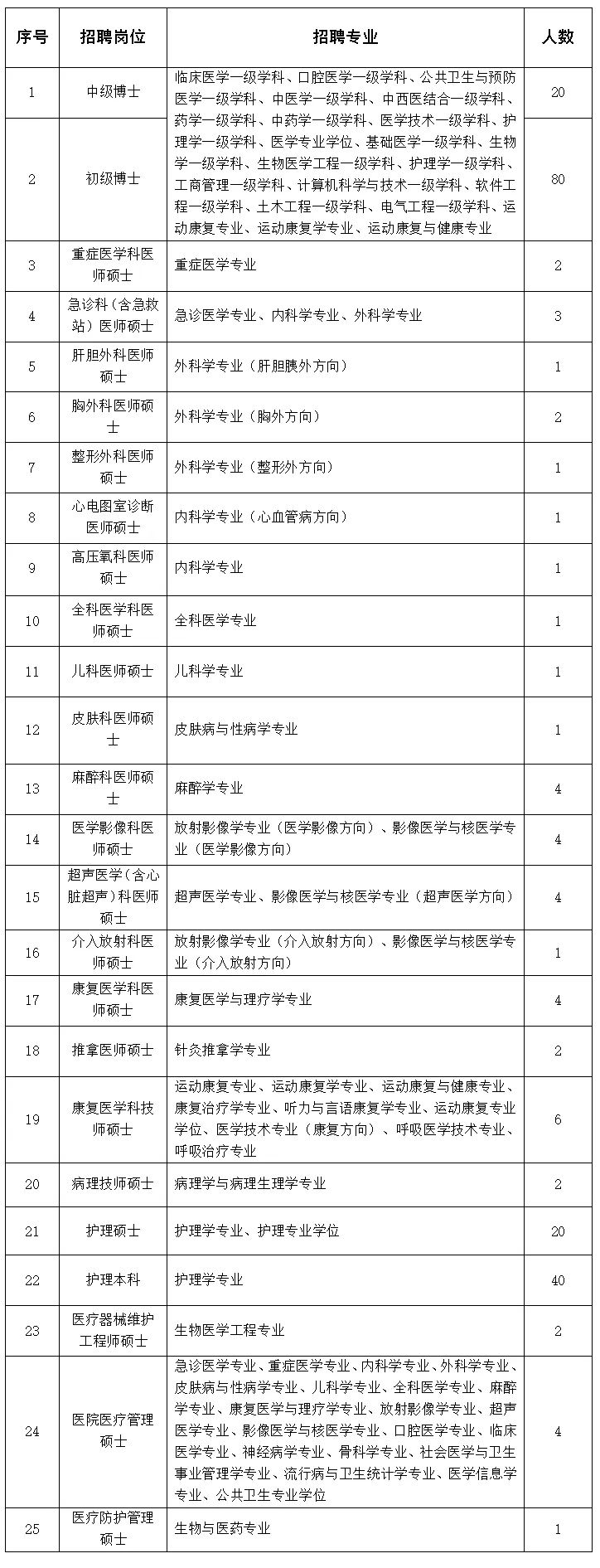 高级人才和博士研究生也可将个人简历发送至医院招聘邮箱:slyyzp@163.com;如有意向我院会另行接洽。
