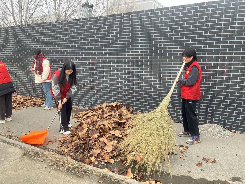 活动当天志愿者们在学校排球场东侧集合在学校后勤老师的安排下对区域进行地面清扫、落叶清理、垃圾分类等环保活动