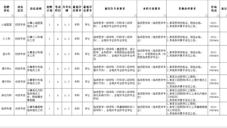 招聘岗位的具体要求根据医院实际制定,应聘人员所学专业、取得资格、从事工作经历等是否符合招聘岗位要求,由医院认定。招聘岗位具体要求,详见岗位一览表。