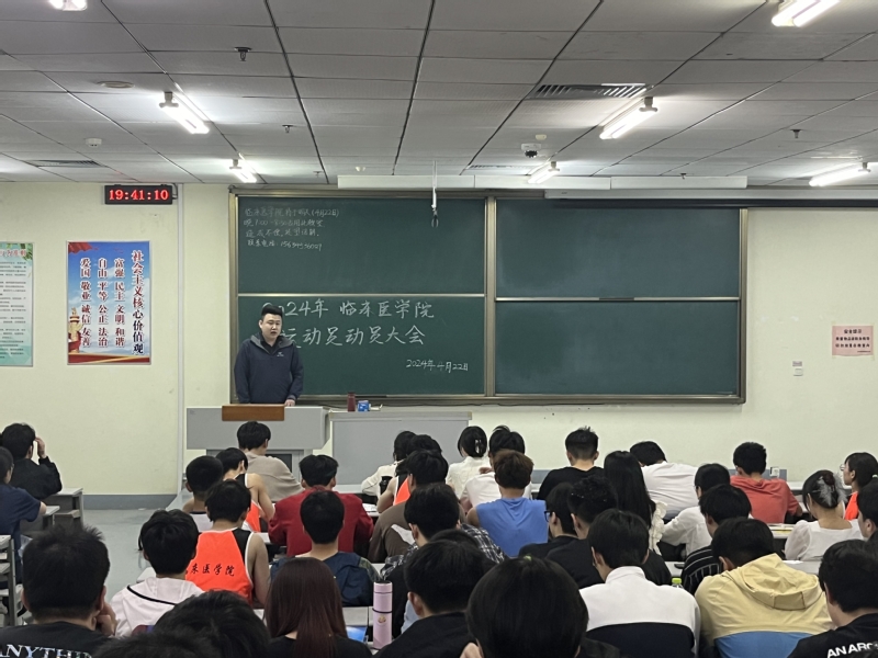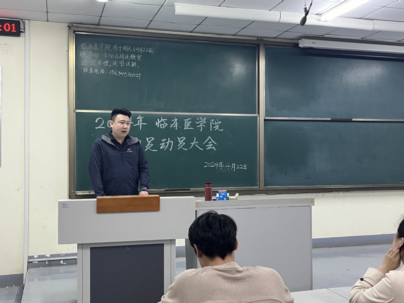 为保障运动员安全,提高运动员的斗志与激情,保证我院在运动会中取得更好成绩,临床医学院团总支于4月22日晚在教学楼601教室召开赛前动员大会。