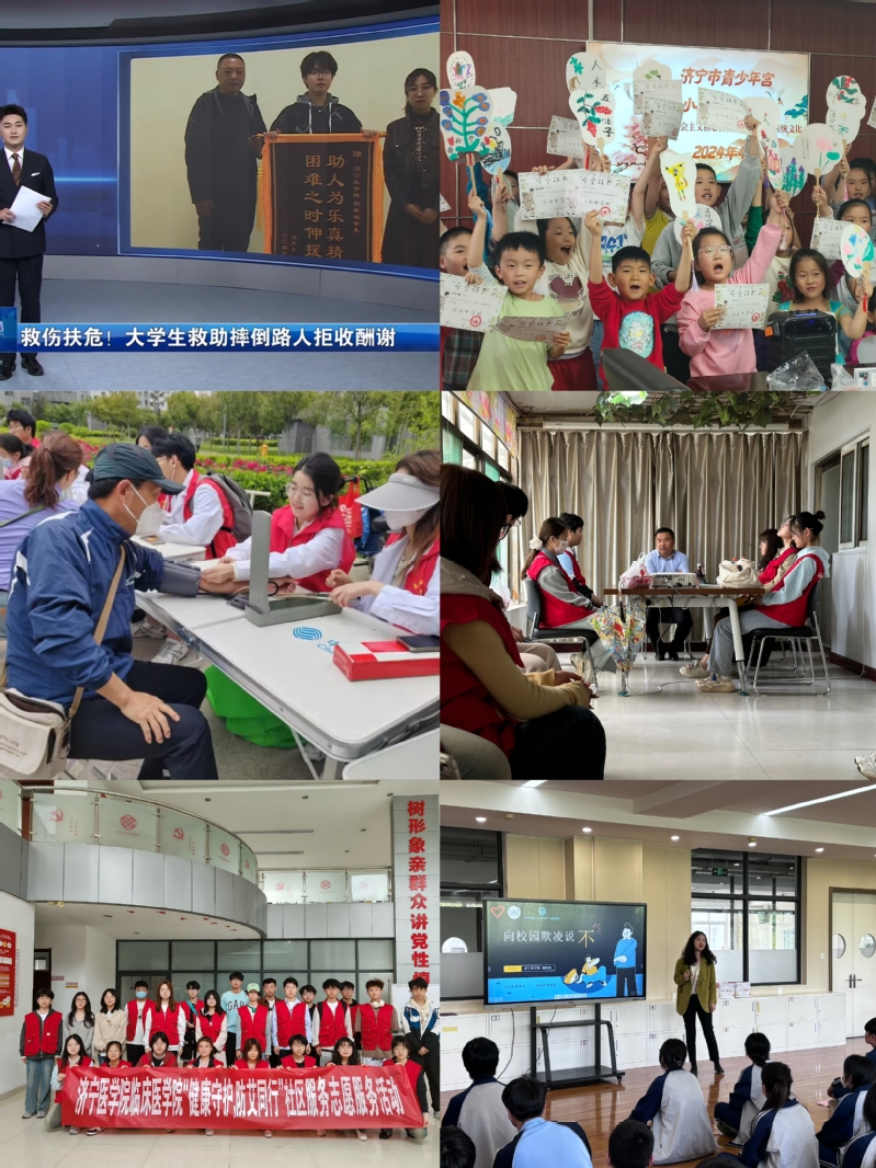 以临床22级救伤扶危的杨家诚同学为例,学院志愿服务活动的经历提升了他的担当和社会责任感,山东教育电视台评论到,“杨家诚同学在生活中展示的道德力量,不光展现了蓬勃的青春活力,更彰显了我们这个时代的精神气质”。这也是学院开展志愿服务活动最理想的成效反馈。