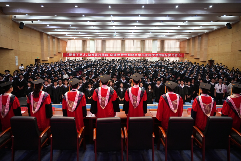刘博代表学院向怀着光荣与梦想、踏上追梦之旅的全体毕业生表示热烈祝贺。他寄语毕业生:一、厚植家国情怀,把个人的理想与中华民族伟大复兴的重任紧密相联,肩负使命,担当作为;二、投身医学事业,勇于面对各种挑战,敬佑生命,救死扶伤,不惧风雨,砥砺前行;三、能够明辨是非,不畏浮云遮望眼,去伪存真,脚踏实地,终能实现人生理想。希望毕业生各自努力,奋发有为;道阻且长,行则将至;行而不辍,未来可期,在新的征程上书写更加灿烂的青春诗篇!不管将来走向哪里,母校始终祝福你们、关注你们、支持你们。