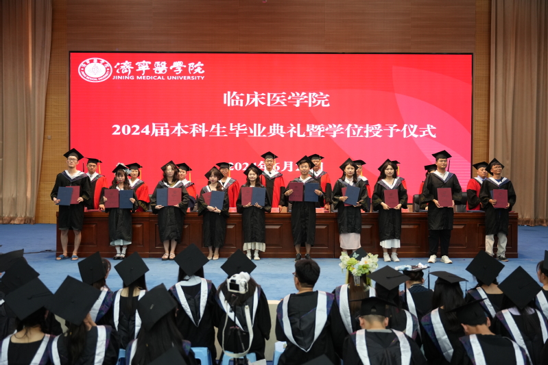 典礼上,临床医学院副院长张璟宣读了2024届毕业生毕业决定和学位授予决定,2023届优秀毕业生和优秀实习生的决定。学院党委班子成员、学院学位评定委员会分委会部分委员为2024届毕业生颁发毕业证书和学位证书,拨正流苏。