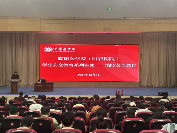 为全面深化安全教育内涵,提升我校消防安全管理水平,进一步强化学院师生的消防安全意识及应急处理能力,临床医学院(附属医院)于12月4日晚,在太白湖校区图文信息楼五层的报告厅举办学生消防安全知识专题讲座。本次讲座邀请附属医院(临床医学院)保卫处副处长闫虎鹏作为主讲嘉宾,莅临现场传授消防安全知识。学院党委副书记杜涛、各级辅导员老师以及2022级、2023级、2024级各班级的学生代表参加活动。