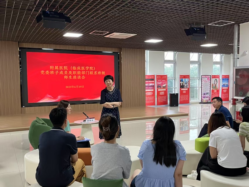 为进一步夯实优良学风建设,助力学子健康成长,6月19日,附属医院(临床医学院)党委委员、总会计师徐俊英走进2024级临床医学本科6班,参加“心灵护航 轻装前行”学生心理减压主题活动。医院工会主席刘婷婷、高级心理治疗师郝献忠、学生工作办公室主任张东园、辅导员郭天和颜思佳以及2024级临本6班全体学生共同参与了此次活动。