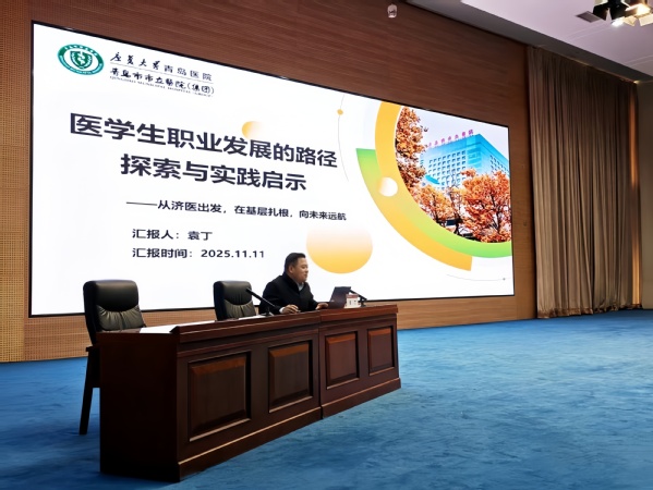 在互动交流环节,袁丁围绕就业方向选择、考研备考策略、基层发展前景等话题进行深入交流。与会学生纷纷表示,此次报告有效解答了职业规划中的困惑,为未来发展指明了前行方向,更增强了对医学职业的认同感与使命感。