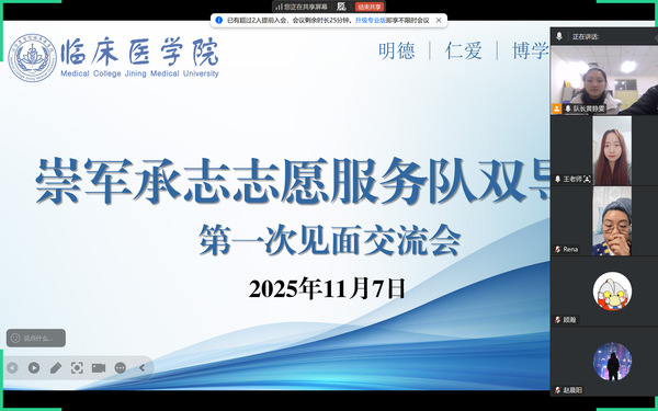 为扎实落实“百万大学生进社区”社会实践工作要求,深化“校内学术导师+社区实践导师”双轨指导机制,近日,临床医学院(附属医院)针对十一月份开展的社区志愿服务项目,组织召开了一场线上双导师复盘与指导会。会议由校内学术导师、学生工作办公室主任张东园,副科级辅导员颜思佳等,联合社区实践导师、古槐街道团工委书记冯质超,县前街社区团支部书记王蕤蕤等共同参与,旨在总结前期经验,优化服务模式,提升实践育人质量。