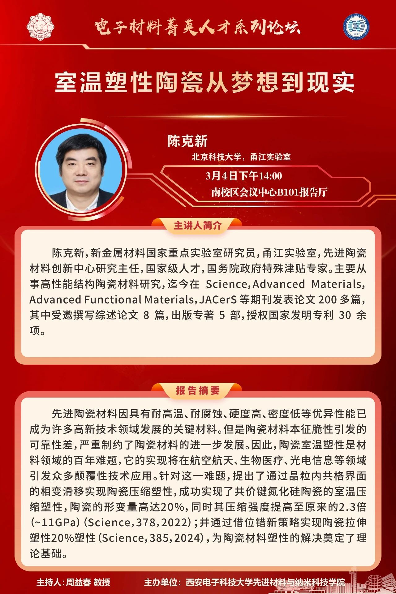 大会简介会议时间:2025年7月5-8日会议地点:福建省厦门国际会展中心主办单位:中国材料研究学会“中国材料大会”是中国材料研究学会的学术年会,是重要的系列品牌会议之一,是中国新材料界学术水平最高、涉及领域最广、前沿动态最新的超万人学术大会,是面向国家重大需求、推动新材料前沿重大突破的高水平品牌大会。“中国材料大会2025”拟定于2025年7月5-8日在福建省厦门国际会展中心举行,涵盖能源材料、环境材料、先进结构材料、功能材料、...