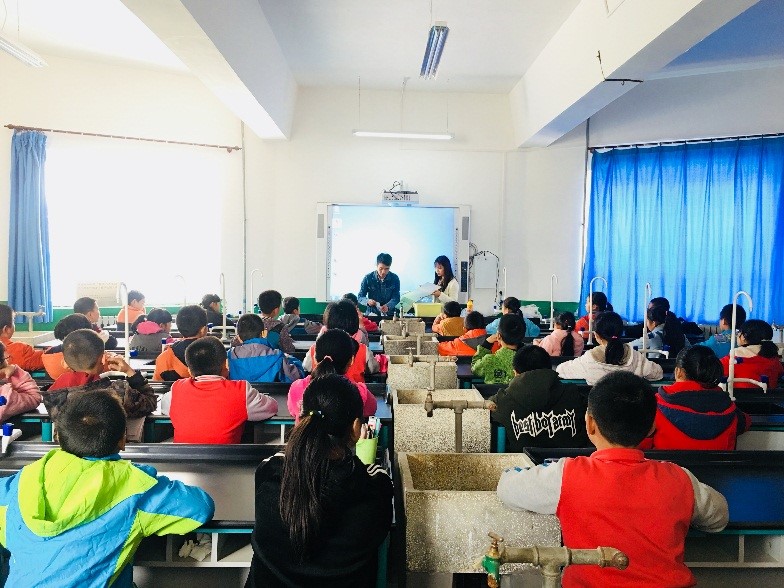 上午9点,材料学院师生代表驱车到达洛滨镇,校长李文宏代表学校对材料学院一行的到来表示热烈欢迎,并在学校广场举行了简短的捐赠仪式。卢硕代表材料学院全体师生对帮扶学校师生表示慰问。本次帮扶活动经过充分沟通和认真准备,共包括少儿图书和保温杯捐赠、计算机知识讲座、趣味科学小课堂和帮扶工作深入交流洽谈等一系列活动。