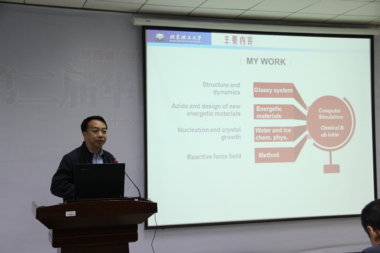 秦勇教授首先代表学院对4位专家学者的到来表示热烈欢迎,并就中南大学刘文胜教授、中国工程物理研究院新能源研究所张文华教授、空军工程大学的马华教授以及北京理工大学吕勇军副教授等个人情况进行了简短介绍。在学术报告环节,刘文胜、张文华、吕勇军立足自己的研究领域,分别作了题为《金锡共晶合金的凝固组织调控与变形机制研究》、《新型太阳能材料与电池应用研究》、《非晶态体系的弛豫动力学研究》的学术报告,将自己最新研究成果和进展进行了分享,并和与会师生进行了深入探讨,交流了材料科学发展的新思想、新理论和新应用,共同探索材料学科最新的发展趋势。报告会上掌声不断,师生们沉浸在浓郁的学术氛围、激烈的思想碰撞和交流中。杨如森教授主持了学术报告环节。