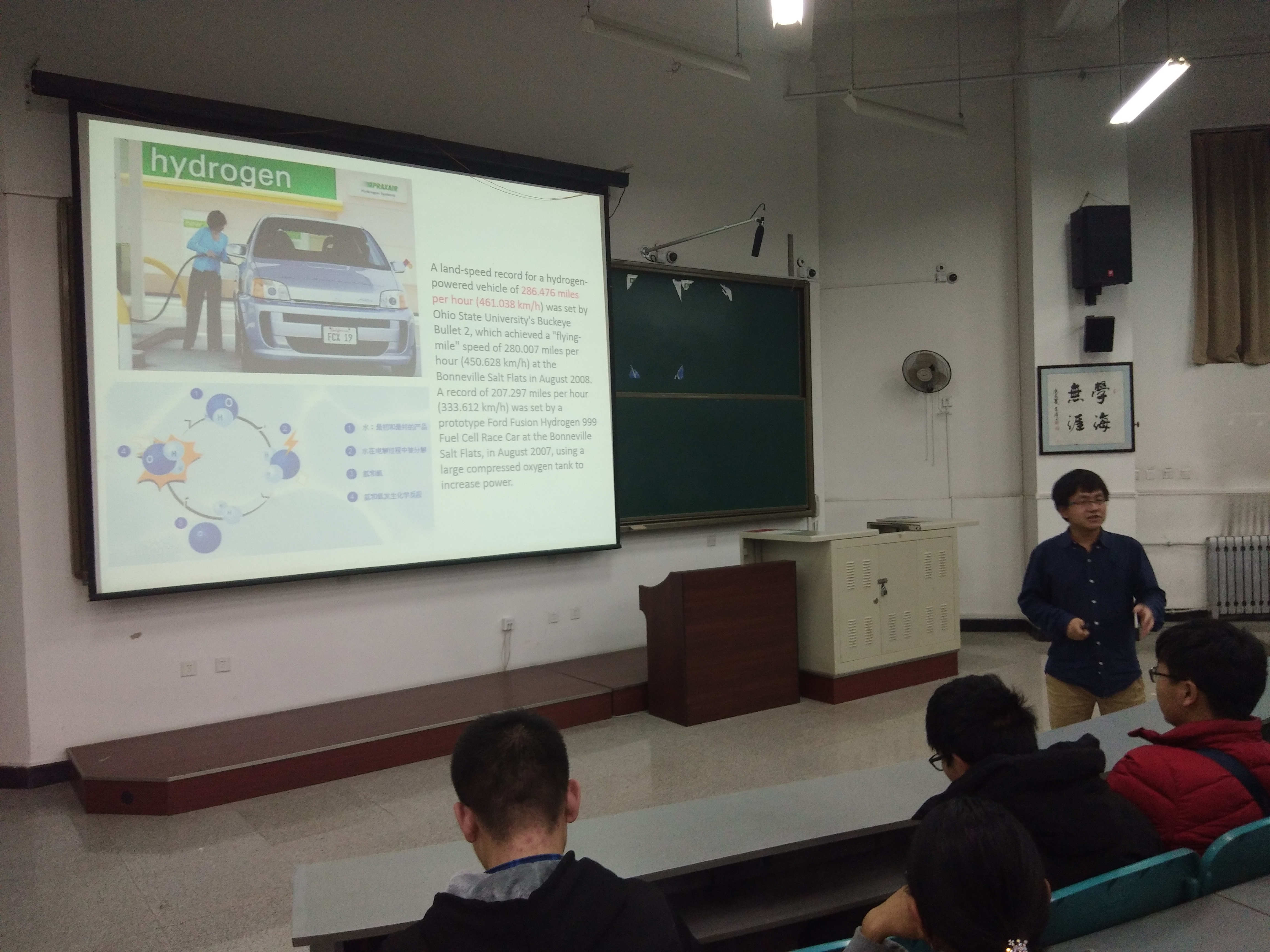 讲座伊始,赵振环以现在频发的雾霾天气为切入点,讲解了传统化石燃料对环境的污染,并细数了大气污染、温室效应等如今较为严峻的环境问题,进而提出了人们在能源方面的更好选择——清洁能源,让同学们认知到了清洁能源技术的重要性与必要性,也使大家对此次报告产生了浓厚的兴趣。