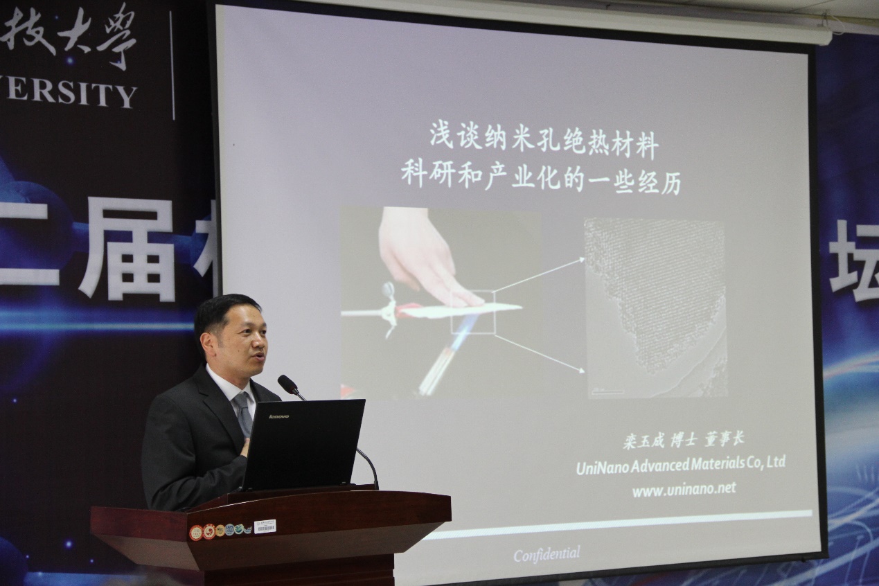 上海宥纳科技董事长栾玉成博士首先跟大家分享了纳米孔隔热材料科研和产业化的一些经历。报告伊始,栾玉成博士就公司发展历程、公司的主要产品纳米孔材料进行介绍,包括纳米孔的保温隔热性能和广泛的应用领域。接着,栾玉成博士对中国科研现状,以及成果转化率较低的原因进行深入分析,并鼓励大家积极创新,敢于尝试。最后,栾博士分享了“技术-产品原型-产品化-商品-正现金流”这条从技术到可盈利公司的商业路径,并重点介绍了纳米孔隔热材料产品化时的一些问题。如做AR薄膜时,过长烘烤时间影响薄膜均匀性和光学性能的问题,以及做保温材料时,模板去除引起废气、废水以及稳定性的问题。栾博士总结道,国内现在科研水平逐步提高,但产业化能力与科研成果还有一定的距离,通过分享自己在纳米孔材料成功产业化的宝贵经验,希望能给在场师生提供一些参考和帮助。