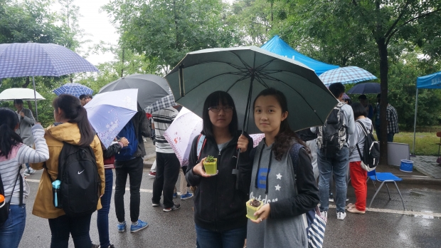 27日早晨7点,团委工作人员就开始布置现场,为中午12点正式开始的活动做准备。活动第一项是自制寿司,工作人员精心挑选食材,亲自指导制作以保证活动的流畅性。该活动受到了同学们的一致欢迎,前来制作的同学络绎不绝。活动第二项是神笔马良——一个多人共同创作书法作品的活动。创作过程中需要很强的团队协作的能力,希望通过这个活动可以培养同学们的团队合作意识,促进身心健康发展。第三项——红包雨活动,红包中是由工作人员精心挑选的各国的纪念币、纪念钞以及干花书签等纪念品。精致的纪念品吸引了很多同学,都对此活动十分称赞。最为火爆的活动是第四项多肉植物、干花手环和星空瓶兑换活动。尽管已经提前考虑到此游戏受欢迎的程度,并增加了领取难度,即采取转发活动推送集赞并分时段兑换的方式,但是中午及下午兑换时段开场不满一小时,百余份工艺品已经被全部领完。其中中午兑换时段更是在十分钟内领取一空。