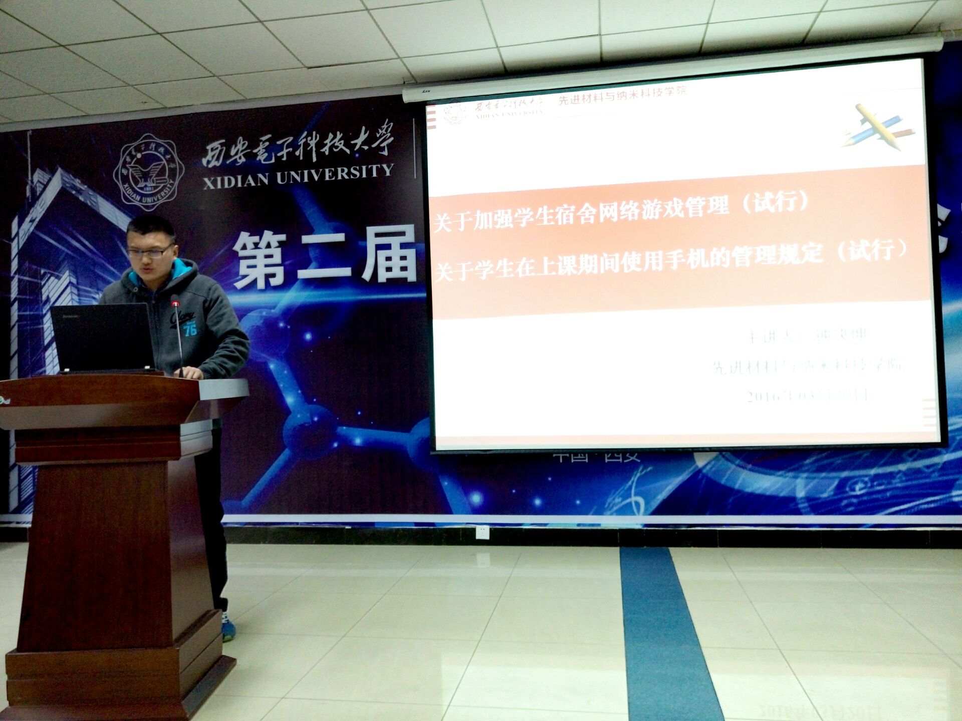 首先,钟决坤详细介绍了《西安电子科技大学关于加强学生宿舍网络游戏管理的规定(试行)》、《西安电子科技大学关于学生在上课期间使用手机的管理规定(试行)》等两个文件,把我院学生宿舍使用电脑和课堂使用手机的情况做了简单说明。这两个文件旨在进一步弘扬优良校风学风,引导学生严责遵守“一日生活制度”,自觉养成良好的学习生活习惯,积极营造“秩序井然、学风浓郁的”校园氛围。