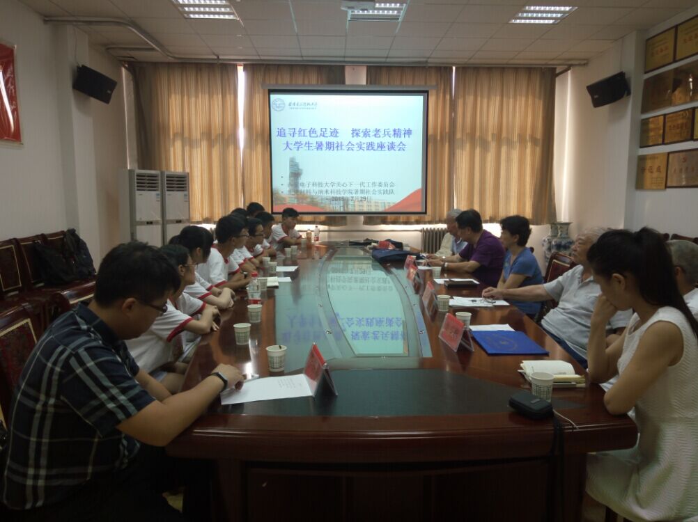 29日,暑期实践队、家委会和离退休办公处一同合作,举行西电退休老干部微型座谈会,面对面和西电离任领导交流,同学们聚精会神倾听老师们的讲述,会后他们与同学们一一握手告别,寄予了他们对我们深深的期望。