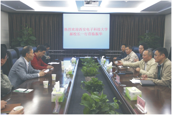 在中国振华电子集团总部的调研座谈会上,郝跃从西电的红色历史讲起,详细介绍了西电的办学规模、专业设置、学科优势、科研特色等方面。他特别提到先进材料与纳米科技学院的科研方向和特色,以及学院在第三代半导体材料与器件方面卓有成效的研究工作。当肖立书总经理谈到企业在第三代半导体产品研发上的预研工作时,郝跃诚意邀请中国振华电子集团到西电调研。