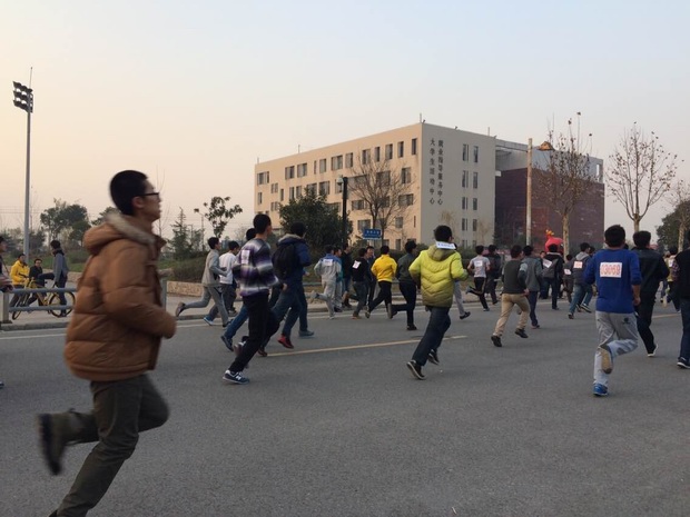 首先,在学校领导的指挥下,冬季长跑启动仪式正式开始。各班体育委员带领参赛选手到指定位置集合、整队、发放号码牌。接着,学生会体育部部长陈德鑫说明了注意事项以及男女生的长跑路线。随后比赛开始,由各院领导带领各院选手进行了短跑热身。接着,在裁判的发令枪声下男女生开始了长跑活动。比赛中各选手全身心的投入比赛,坚持跑完女生2000米、男生3000米的全程,各学院领导也在为各院选手加油打气。
