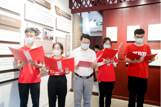 中共一大会址是中国共产党梦想启航的地方,是中国共产党人的精神家园。1921年7月23日,中国共产党第一次全国代表大会在望志路召开,宣告了中国共产党的成立。百年过后,实践队队员来到这个起点,回首我党走过的百年风雨,重温初心使命。在中共一大会址前,同学们高声歌唱《没有共产党就没有新中国》,歌声回响在出发的地方,梦想和初心历经百年沧桑依旧焕发光芒。