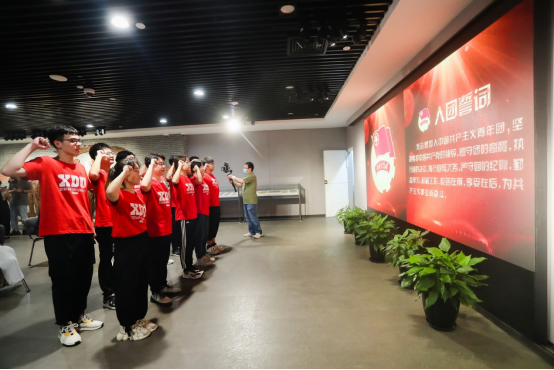 在中国社会主义青年团的诞生地,队员们在讲解员的带领下,参观了“青春赞歌”浮雕墙与团史大事记“青春足迹”步道,重回了那段跌宕起伏、挥斥方遒的荣光岁月。随后,队员们重温了入团仪式,进行了入团宣誓,奏唱团歌。仪式结束后,大家心潮澎湃,纷纷表示“让我们为青春而战,担起民族重任,肩擎鲜艳的团旗,让中国梦照进现实。”