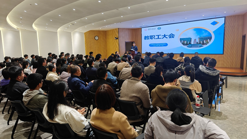 (通讯员 张闻功)3月15日下午,先进材料与纳米科技学院在南校区会议中心召开全院教职工大会,传达学校工作会精神、安排部署学院2024年工作。学院领导班子、全院教职工、部分学生代表,以及相关职能部门负责人参加。会议由副书记陈刚主持。