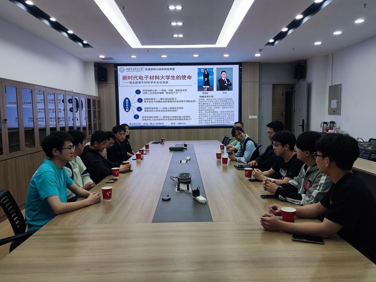 座谈会伊始,老师和同学围绕着“何为新质生产力,西电材料青年应该如何为新质生产力蓄势赋能?”展开了讨论。新质生产力的特点是创新,本质是先进生产力,“高科技、高效能、高质量”是新质生产力的三大特征,畅通教育、科技、人才之间的良性循环是发展新质生产力的着力点。新时代青年是实现高水平科技自立自强的重要主体,其发挥创新创造活力是推动新质生产力发展的题中要义。