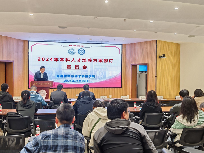为落实学校关于本科人才培养方案修订工作相关要求,进一步统一思想,细化工作部署,提高人才自主培养质量,4月30日上午,先进材料与纳米科技学院在南校区召开2024年本科人才培养方案修订宣贯会。学院领导班子成员、全院教职工,以及相关职能部门负责人参会。会议由副院长施建章主持。