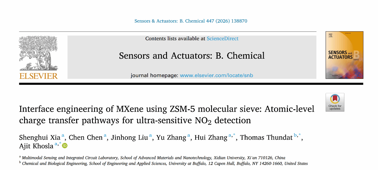 (通讯员  陈涛)近日,西安电子科技大学先进材料与纳米技术学院Ajit Khosla教授团队在传感领域著名权威期刊Sensors and Actuators: B. Chemical(影响因子为7.7发表了题为 Interface engineering of MXene using ZSM-5 molecular sieve: Atomic-level charge transfer pathways for ultra-sensitive NO2 detection”的研究成果