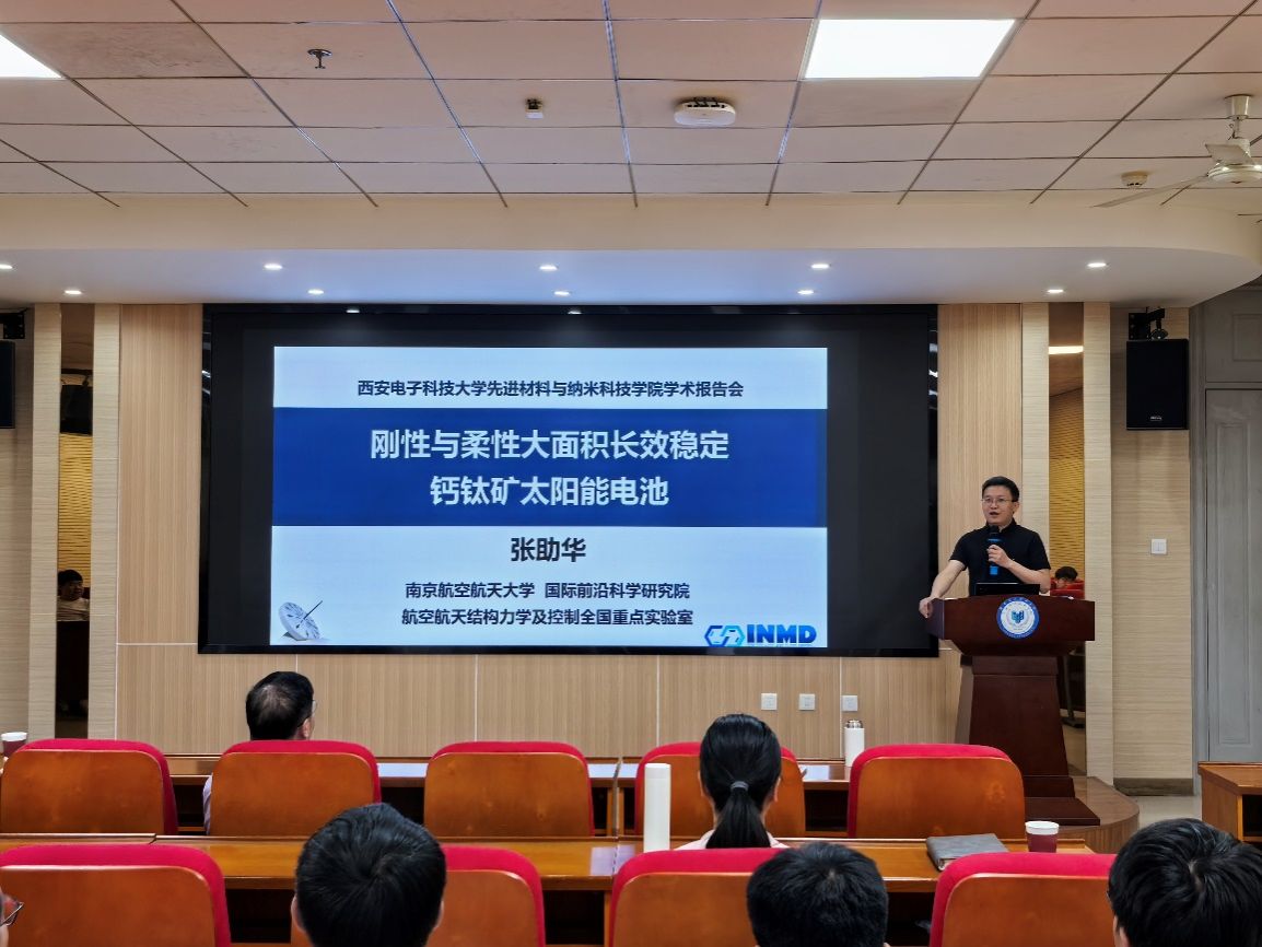 4月17日下午,南京航空航天大学张助华教授应邀访问西安电子科技大学先进材料与纳米科技学院,以“刚性与柔性长效稳定钙钛矿太阳能电池”为题,为学院师生作专题学术报告。本次报告会由学院执行院长杨丽主持,党委书记宋刚锋及百余名师生共同参与。