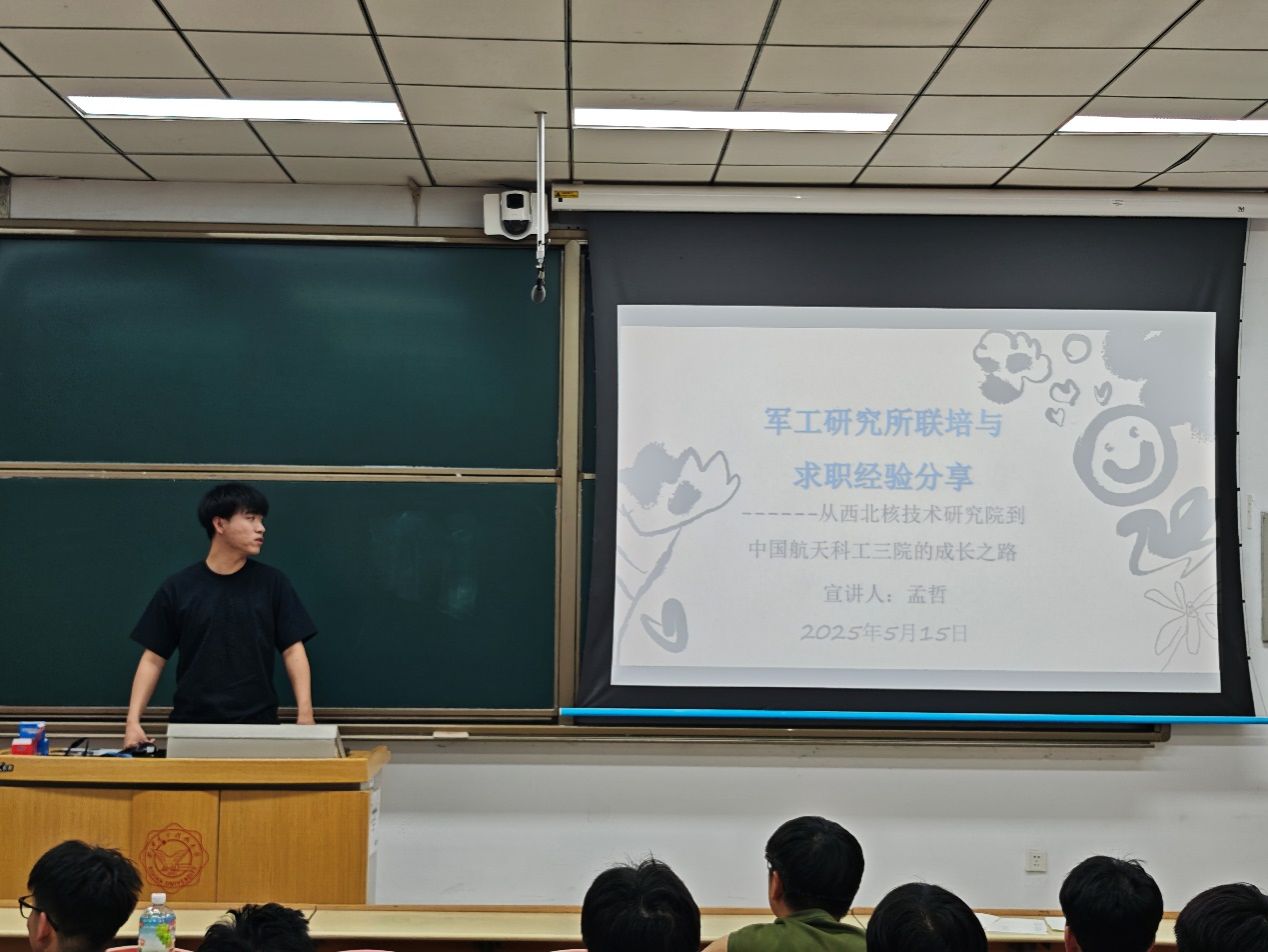 两场分享以“军工报国”与“学术追光”双线并进,生动勾勒出新时代青年科技人才的成长图谱。从西北核技术研究院联培的“顶天立地”到国家奖学金的“多维突破”,从空天防御工程的战略视野到交叉科研的破界创新,主讲人孟哲、谯云以躬身实践的奋斗足迹证明:卓越的背后,是学术深耕与服务国家需求的同频共振,是硬核技能与系统思维的双重淬炼,更是个人理想与强国使命的深度融合。