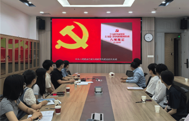 (通讯员 贾宇轩、唐颖)为学习习近平总书记关于加强党的作风建设的重要论述,推动开展深入贯彻中央八项规定精神学习教育走深走实,6月6日下午,先进材料与纳米科技学院智能生物材料及应用研究所党支部观看2025年高校党组织示范微党课展播直播第1讲《党的作风建设的重要意义》,支部书记董广志以“厉行节约,反对浪费”为主题讲授党课,支部党员参加学习和党课活动。