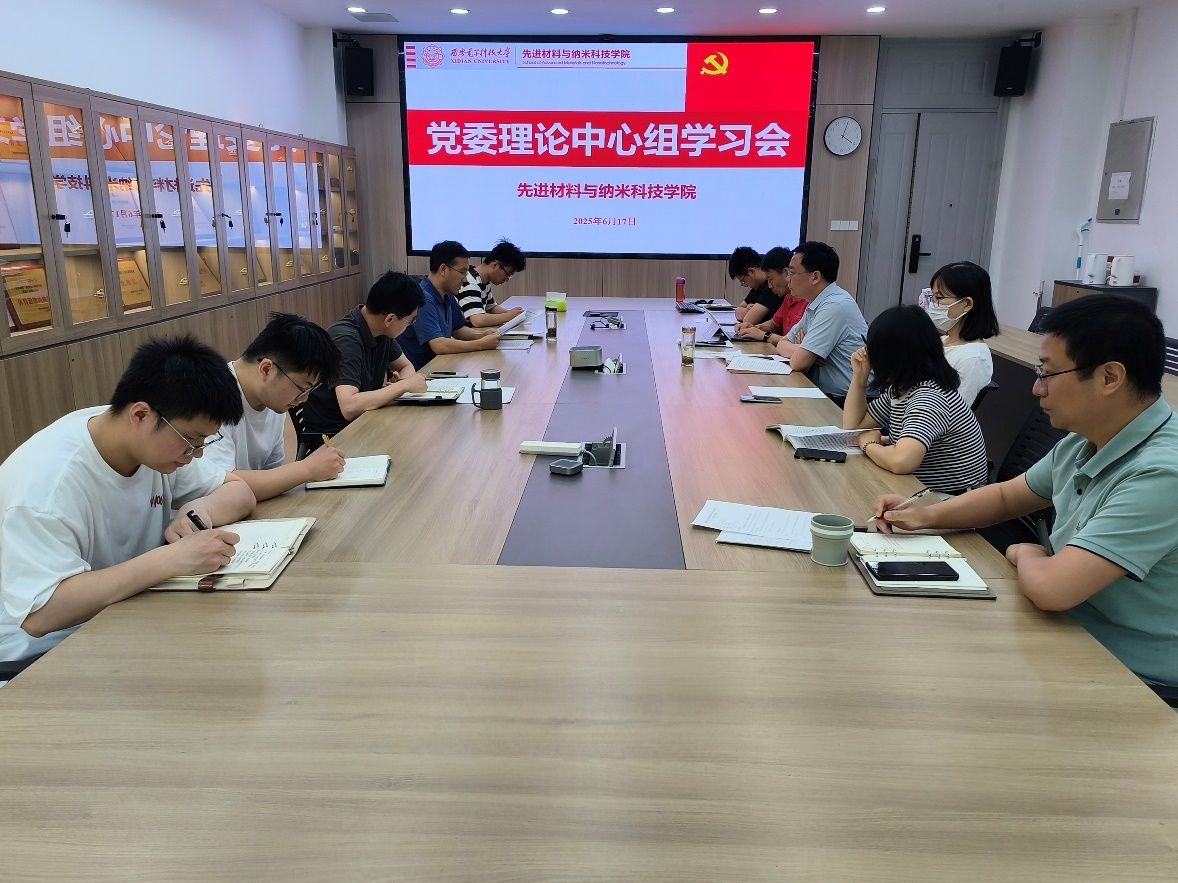 (通讯员  杜敏)617日,先进材料与纳米科技学院召开党委理论学习中心组(扩大)学习会专题学习学校贯彻落实教育强国建设规划纲要三年行动方案(2025-2027年)等内容,学院党委理论学习中心组成员、支部书记参加党委书记宋刚锋主持。