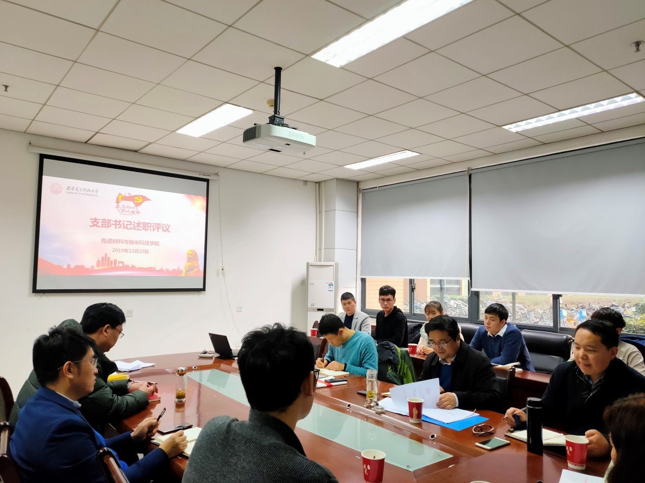 (通讯员 杜敏)为推动全面从严治党向基层延伸,提高党建工作质量,2019年12月20日下午,先进材料与纳米科技学院党委在G-119会议室开展2019年度党支部书记述职评议工作,作为支部书记守初心、担使命,找差距、抓落实的一次政治体检。学院领导班子成员和各支部书记参加了本次会议,会议由学院党委书记卢硕主持。