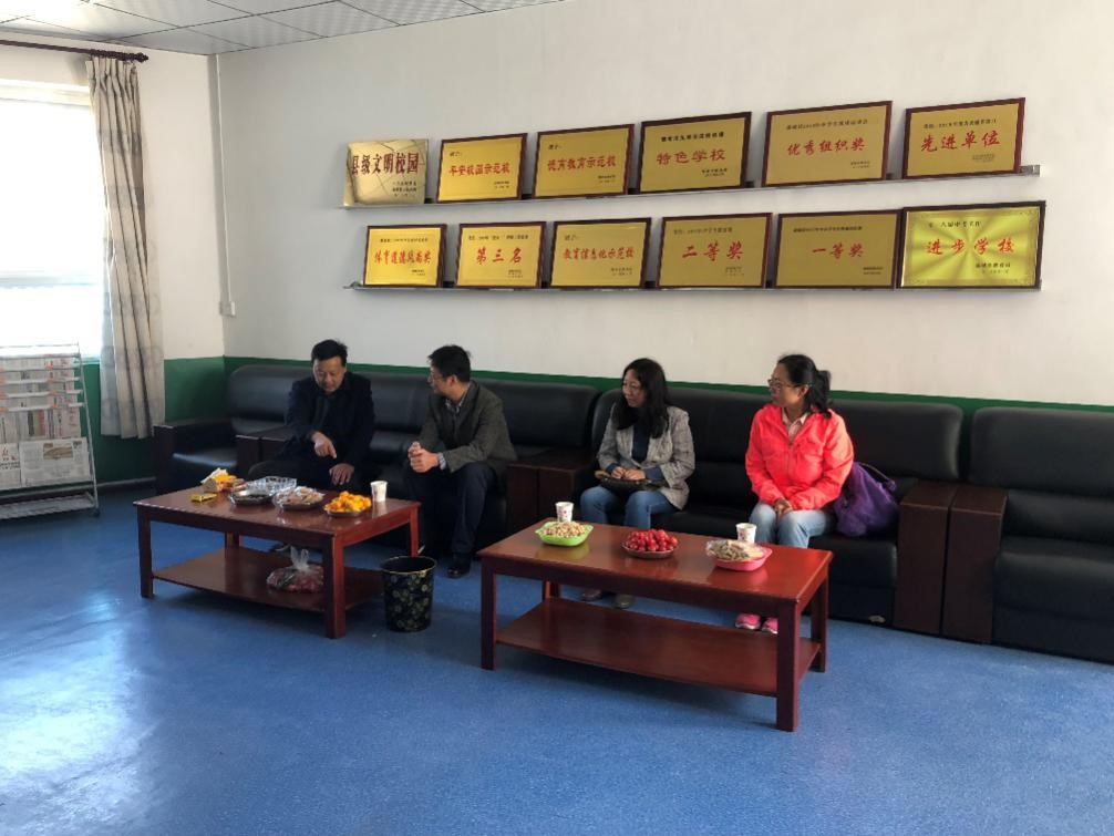 刚到学校,扶贫组一行就与学校校长李文宏和教师们亲切交谈了起来。李文宏校长讲述了学校的基本情况与发展现状,开展定点扶贫计划以来,能够保障学生们的基本教育需求。但是仍然存在师资能力培养不足和流失等问题,时常出现老师“身兼数职”的情况。部分书法室和音乐室等文艺教学的硬件设施得到完善,但具备相应能力的配套教师供应却不能满足。李校长寄言,虽然现阶段面临着困难和挑战,但义务教育的职责更要承担,努力提高教学水平,让每一个入学的孩子可以接受教育,困境中更要辛勤耕耘工作,道阻而艰。目前学校的发展也正需要西电这样的高校来帮助开展教学和培养工作,给孩子们播种求知的种子,成人成才,回报社会。